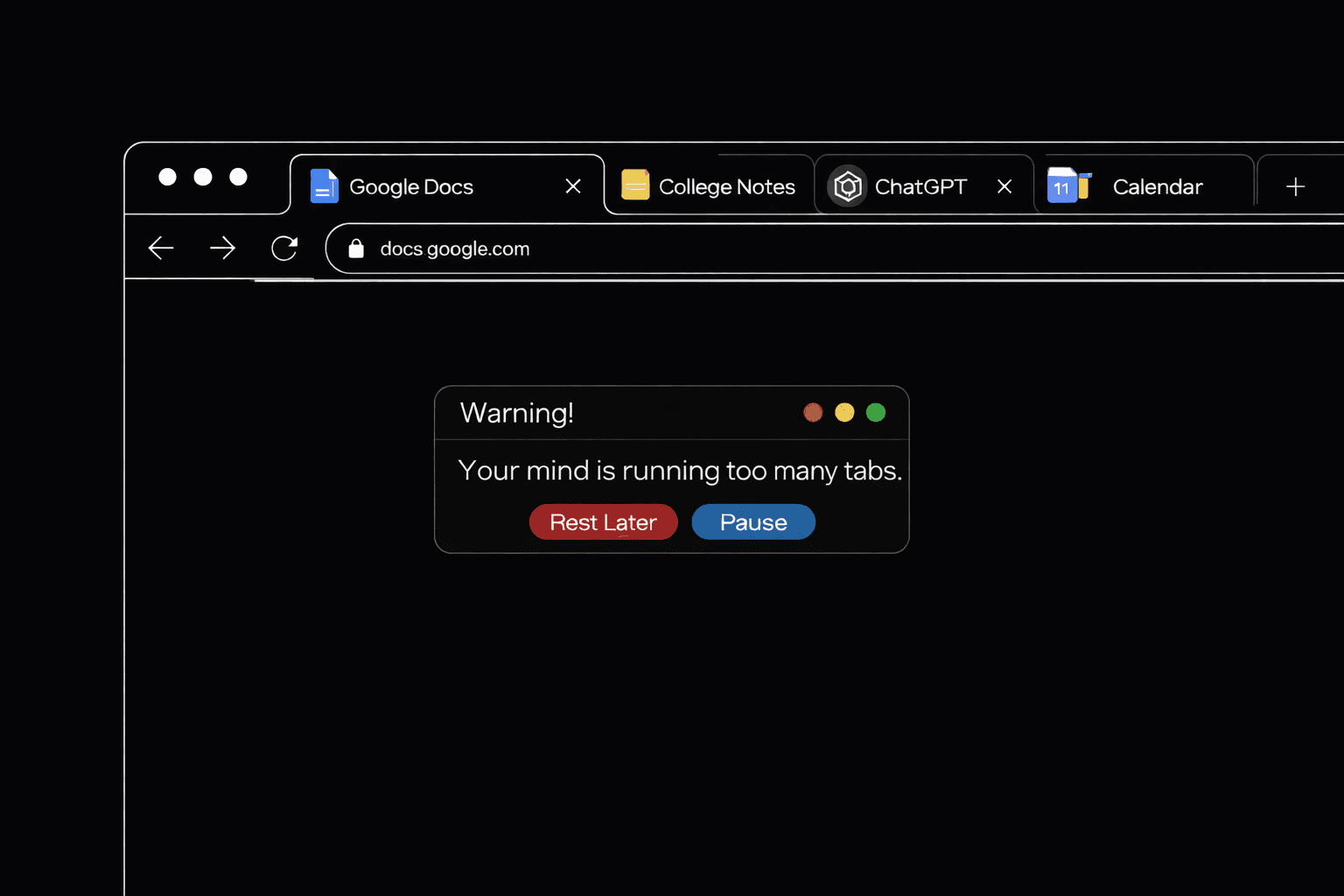 A student writing a 2,000-word paper on sustainability policy might have Google Docs, Notion, three PDFs in a browser, ChatGPT, their university portal, Spotify, a group chat in Slack, and probably Instagram "just to check something real quick." None of these talk to each other.